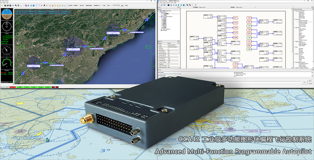 CCA4X工业级多功能图形化编程飞行控制系统,采用了类似于MATLAB和Simulink的控制律组态建模设计软件,只需简单操作鼠标连接相关的功能模块,无需编写代码就可以构建结构和流程直观清晰的飞行控制系统程序。
