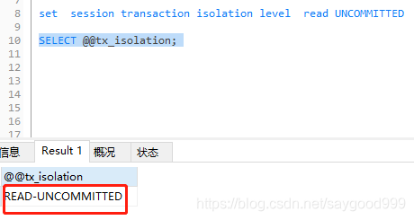 首先设置数据库的隔离级别为读未提交