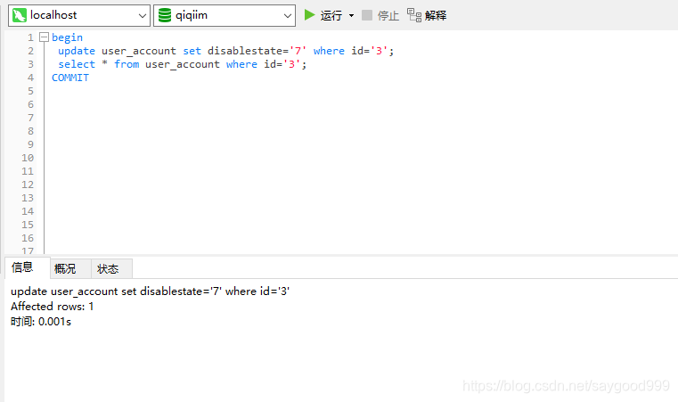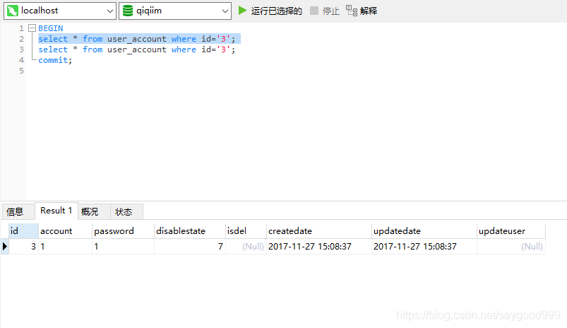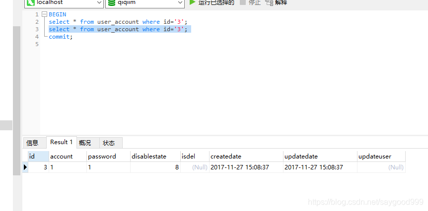 1、开启事务(begin)
