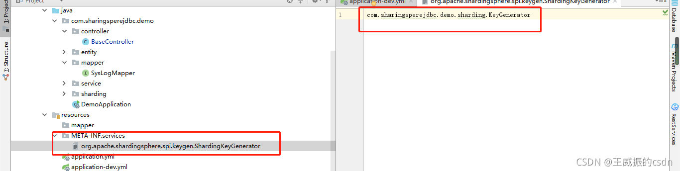 文件的内容:com.sharingsperejdbc.demo.sharding.KeyGenerator就是你自己定义生成主键的类