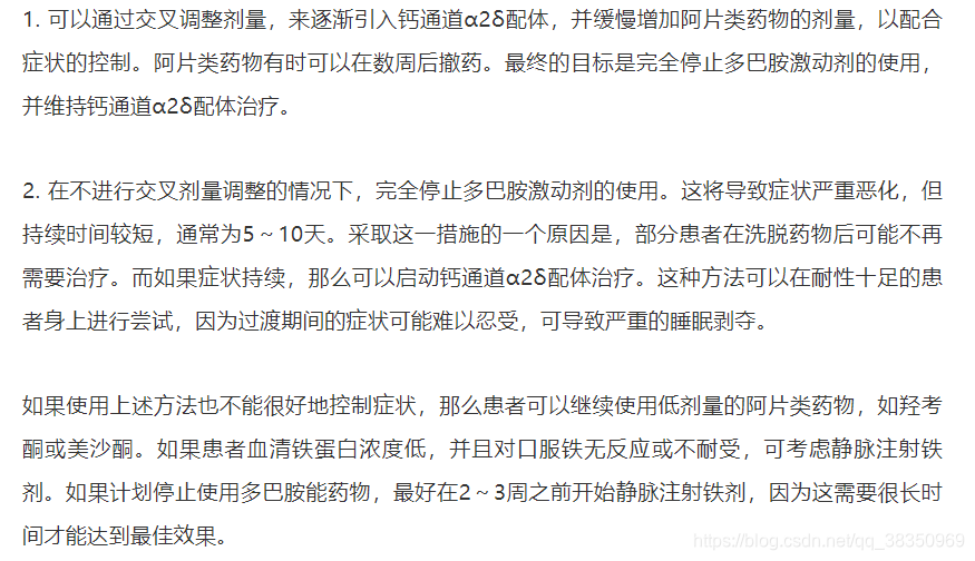参考资料:多巴胺能药物治疗不宁腿综合征,掌握好这3个问题丨临床“药”点 (qq.com)