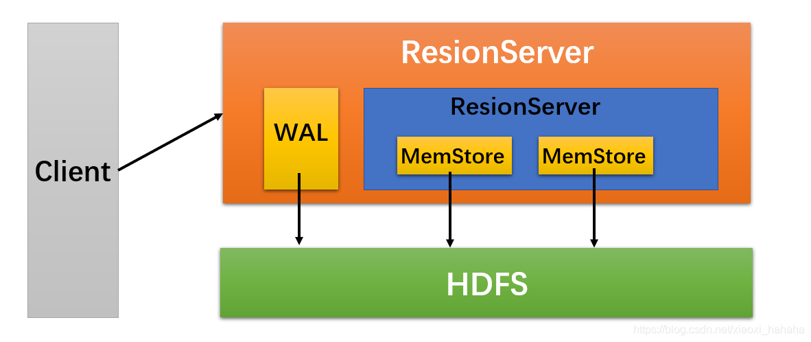 (4)MemStore位于ResionServer的内存中,HFile被写入到HDFS(Hadoop 分布式文件系统)中。
