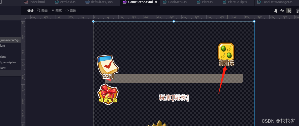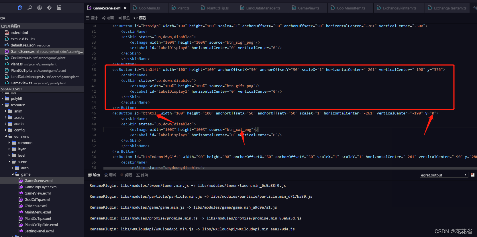 4.调用图片 ,比如我要添加到首页上面的按钮,复制exml里面的图片引入代码 ,修改sourec图片路径