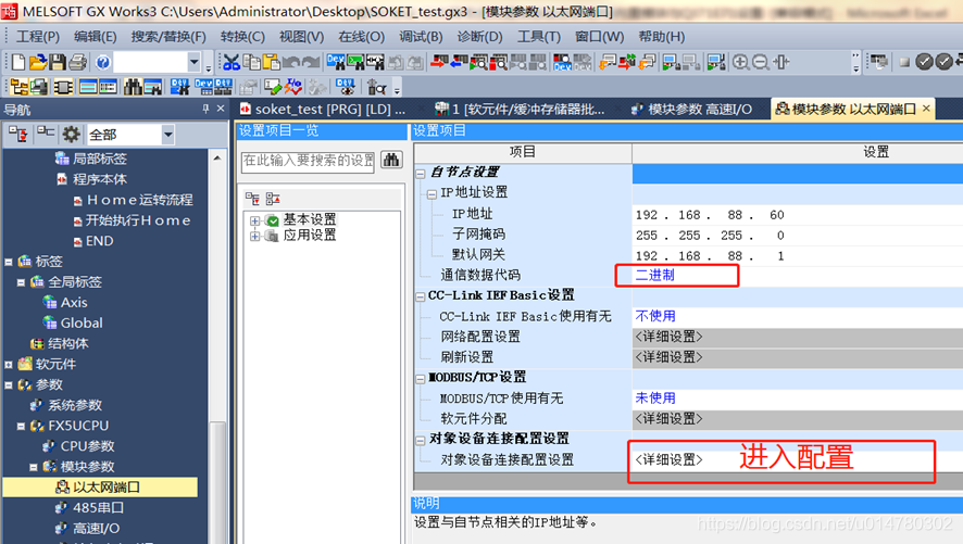 3.FX5UPLC需要设置SLMP和IP地址,步骤如下。