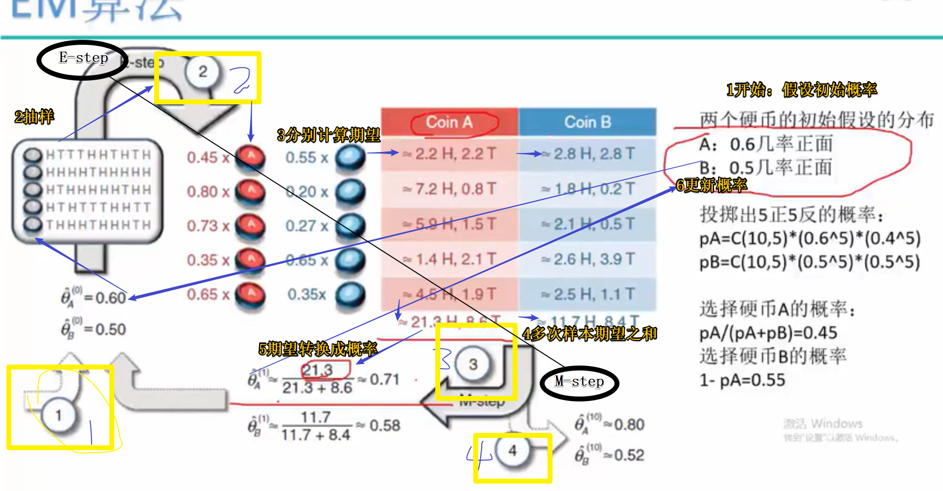 注意:EM算法是对初始化参数敏感的