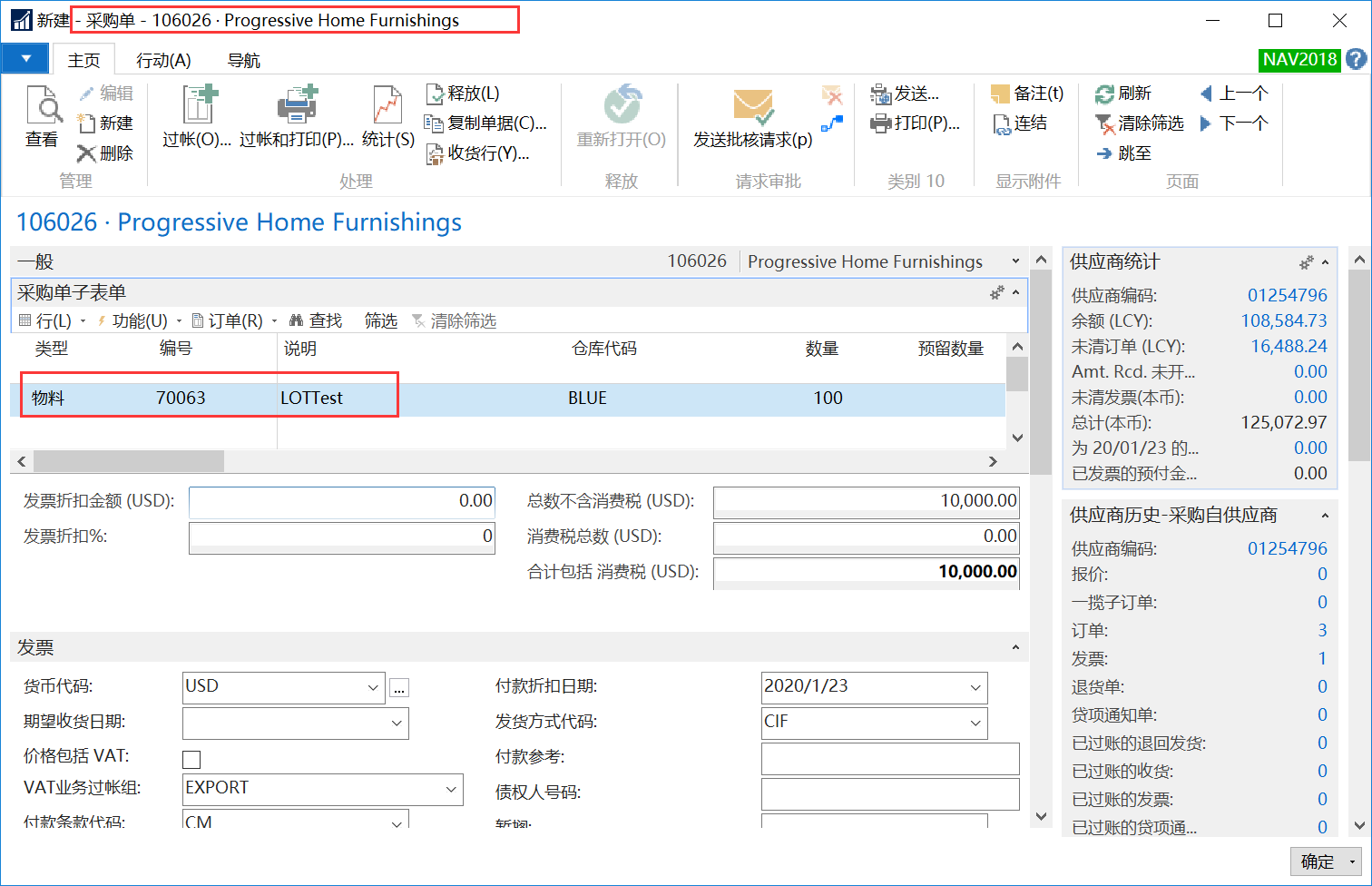 AX2012需要预先创建物料对应的批次信息后才可以使用,而NAV2018不需要预先创建。