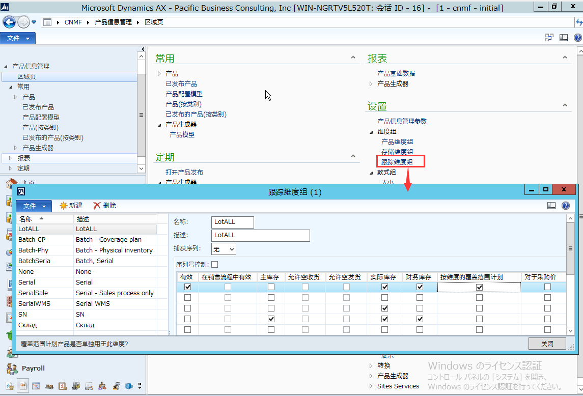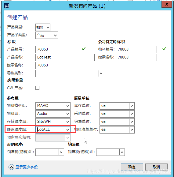 1.在CNMF/产品信息管理/区域页/设置/维度组-新建批号追踪 LOTALL,选择必要的追踪选项。