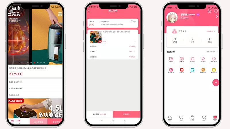 ①内嵌商城系统:商品管理,上架下架商品,拥有交易闭环,可以打造成一个强大的电商交易系统平台