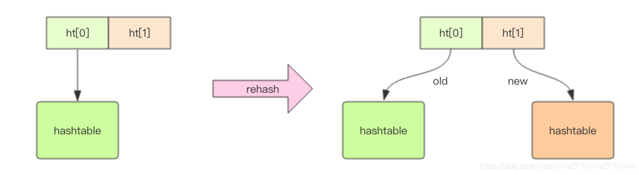dict内部有两个hashtable,通常情况下只有一个hashtable是有值的;在dict扩容或者缩容时需要分配新的hashtable,然后进行渐进式rehash,两个hashtable种存储的分别是新值和旧值;在rehash完成之后,旧的hashtable被删除,新的hashtable会取代旧的hashtable