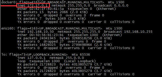 通过 ifconfig 命令可以查看docker0网桥的信息: