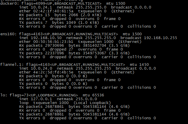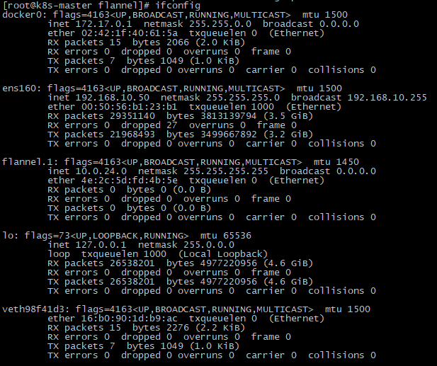此时可以看到docker0的网卡ip地址已经处于flannel网卡网段之内。