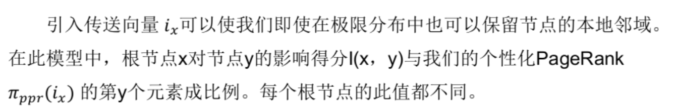 - 该算法增加了传回根节点的机会,从而确保PageRank分数对每个根节点的局部邻域进行编码。