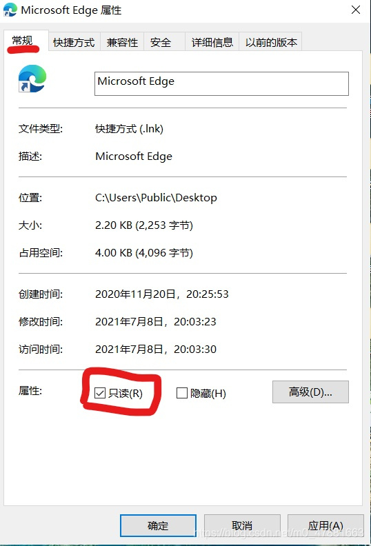 第一步:鼠标右键浏览器-属性-常规-若只读被勾选(则关闭勾选只读),若无直接跳至第二步
