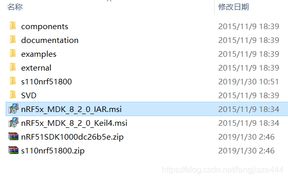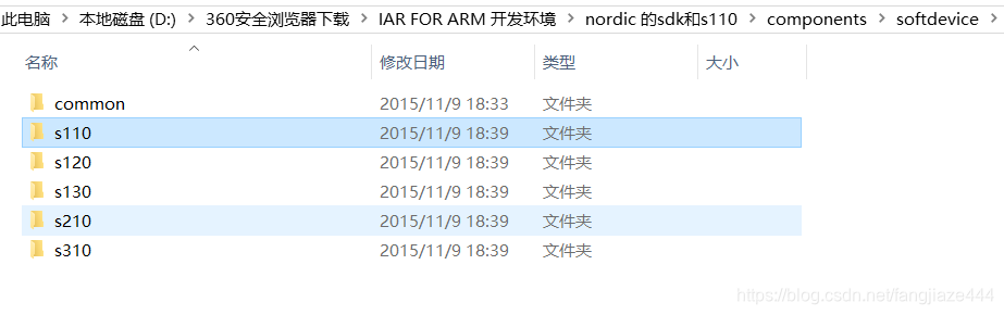 找到相应的协议栈。我们知道是烧录的是S110协议栈,因此上一篇已经介绍了如何安装SDK和S110了,因此直接到components目录中的softdevice目录下找(上一篇介绍过softdevice被认定为协议栈)