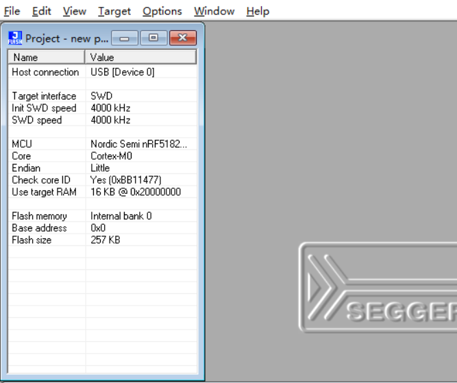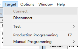 由于目前还并真正未连接到我们的nrf51822的设备,所以在jflash软件做一个连接操作,首先选择菜单target然后选择connect