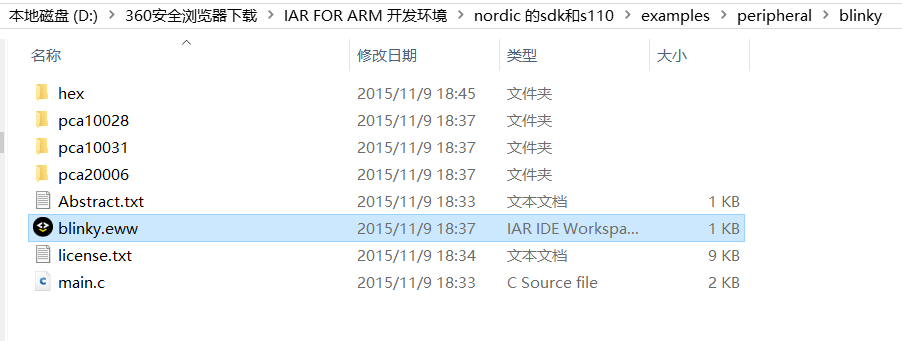由于我们可以入门时先装好s110,故选择s110的固件,然后进入后再进入hex目录