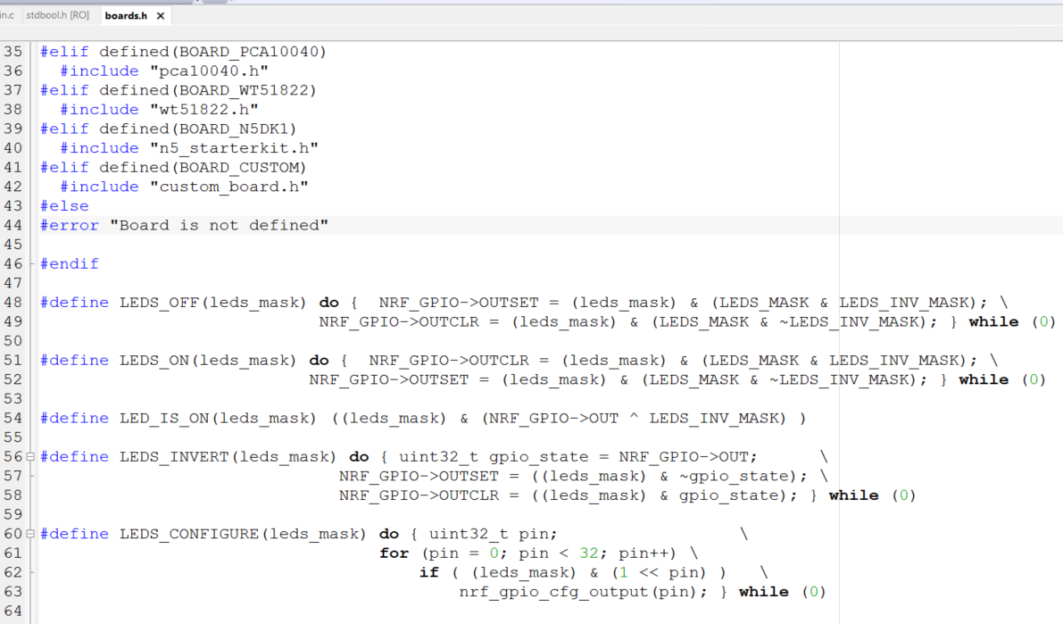 前两个就不介绍了,boards文件经过研究,发现这个文件是在驱动文件之上再模块化编程了一下,这样操作led灯时就方便许多,大家可以仔细阅读源码了解一下。这里全都是宏来完成的led拉高电平或拉低电平或翻转操作,还有led配置宏。非常方便。