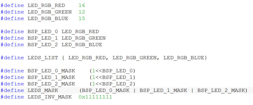 LEDS_MASK这个参数大概猜想就是引脚,跟踪过去。确实,他们是几个引脚做‘于’操作,也就是一起操作,下图中16,12,15分别代表P0.16,P0.12,P0.15 。
