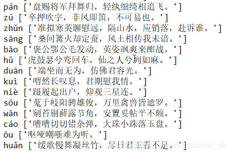 我们可以看一下该pickle文件(poemDict.pk)的内容: