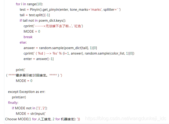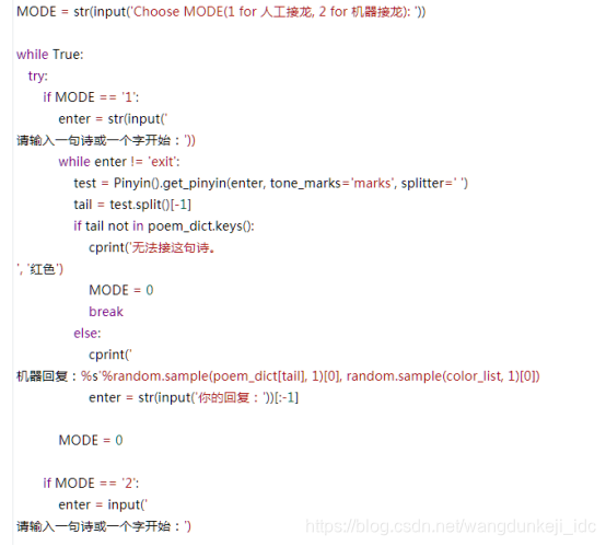 这样我们就完成了mypinyin.py文件。 接下来,我们需要编写诗歌接龙的代码(Poem_Jielong.py),完整代码如下: