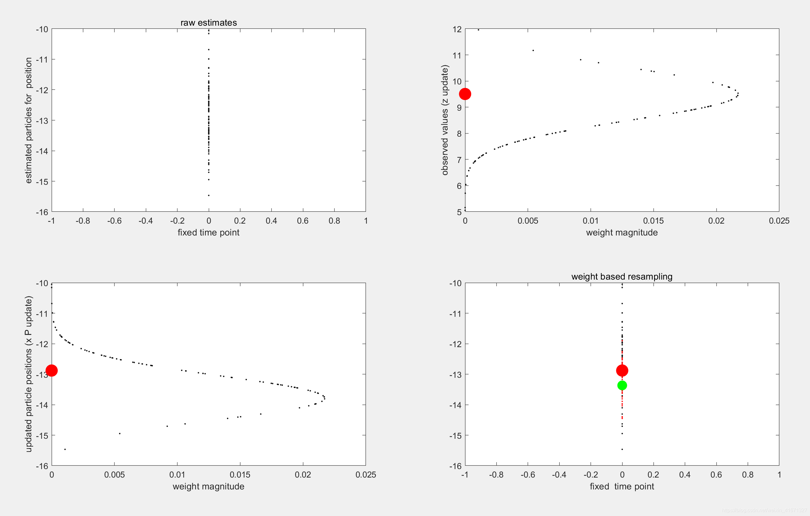 plot(0,x_P_update,'.k','markersize',5)%重采样前的点用黑色小点画出