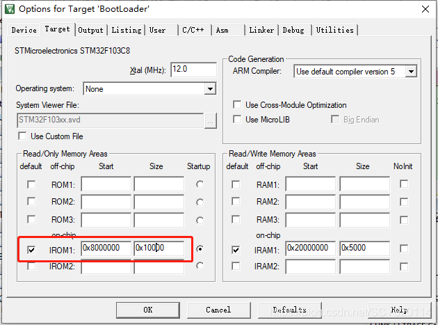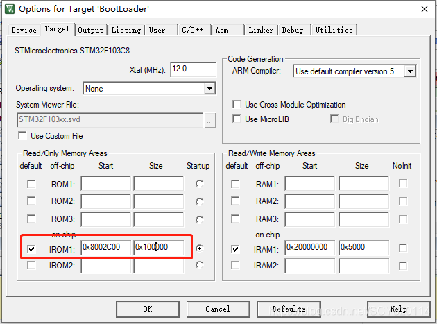 算上BOOTLOADER占用的空间,APP1的地址设置如下图: