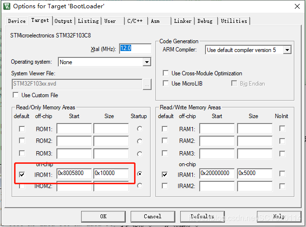算上BOOTLOAD、APP1所占用的空间,APP2的起始地址要从 0x5800开始,设置如下: