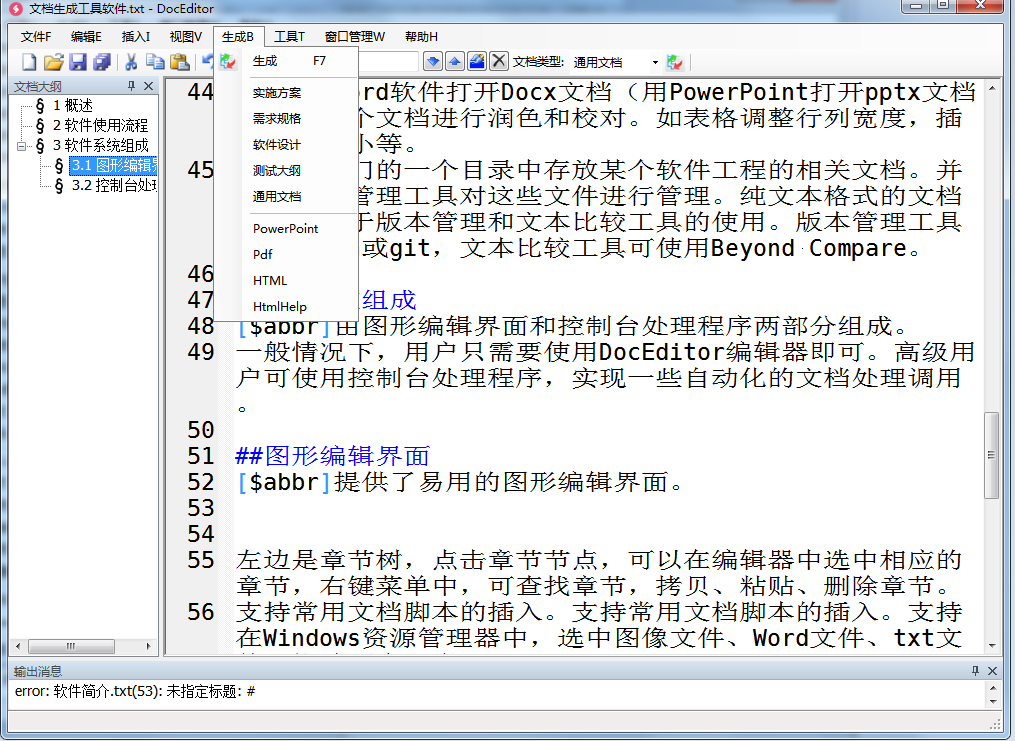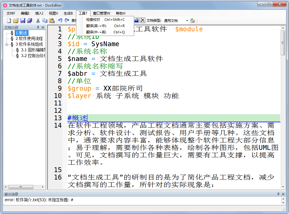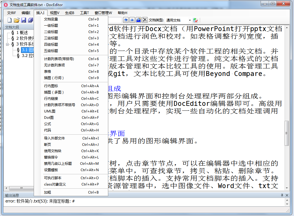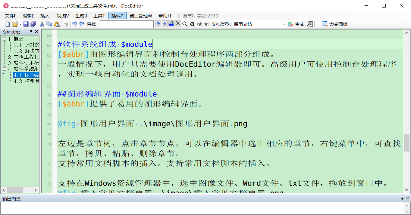 文档生成工具由DocEditor图形编辑界面和控制台处理程序两部分组成。