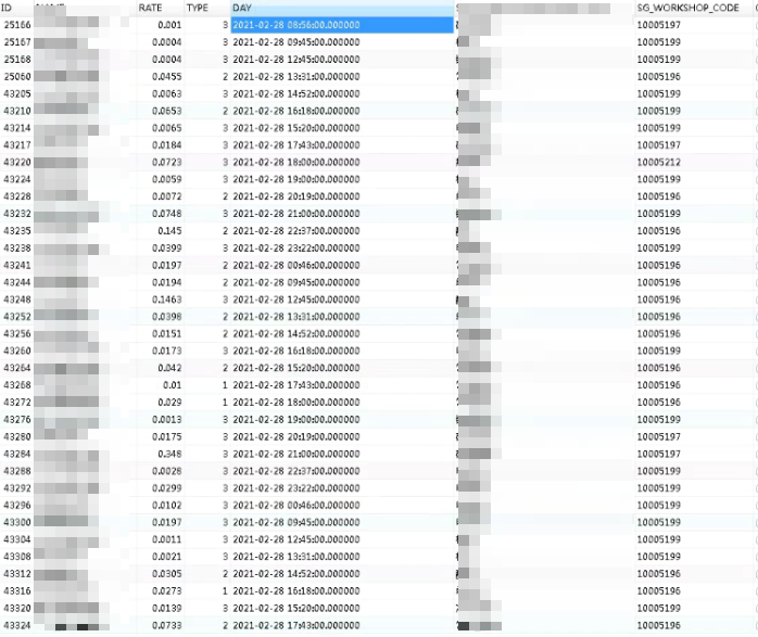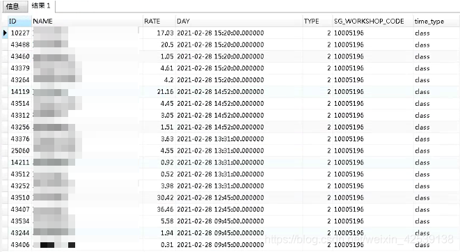 | SELECT ID, NAME, RATE * 100 RATE, DAY, TYPE, SG_WORKSHOP_CODE, 'class' AS "time_type" FROM LZ_CLASS_STOCK_REPORT WHERE SG_WORKSHOP_CODE = '10005196' AND TYPE = 2 AND day > SYSDATE - 2 / 3 |