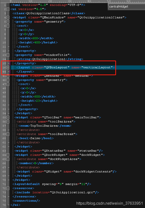4. 最后添加QtGuiApplication1Class->setCentralWidget(centralWidget);