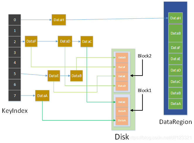 共享内存里:黄色的索引块,DataRegion里面的数据