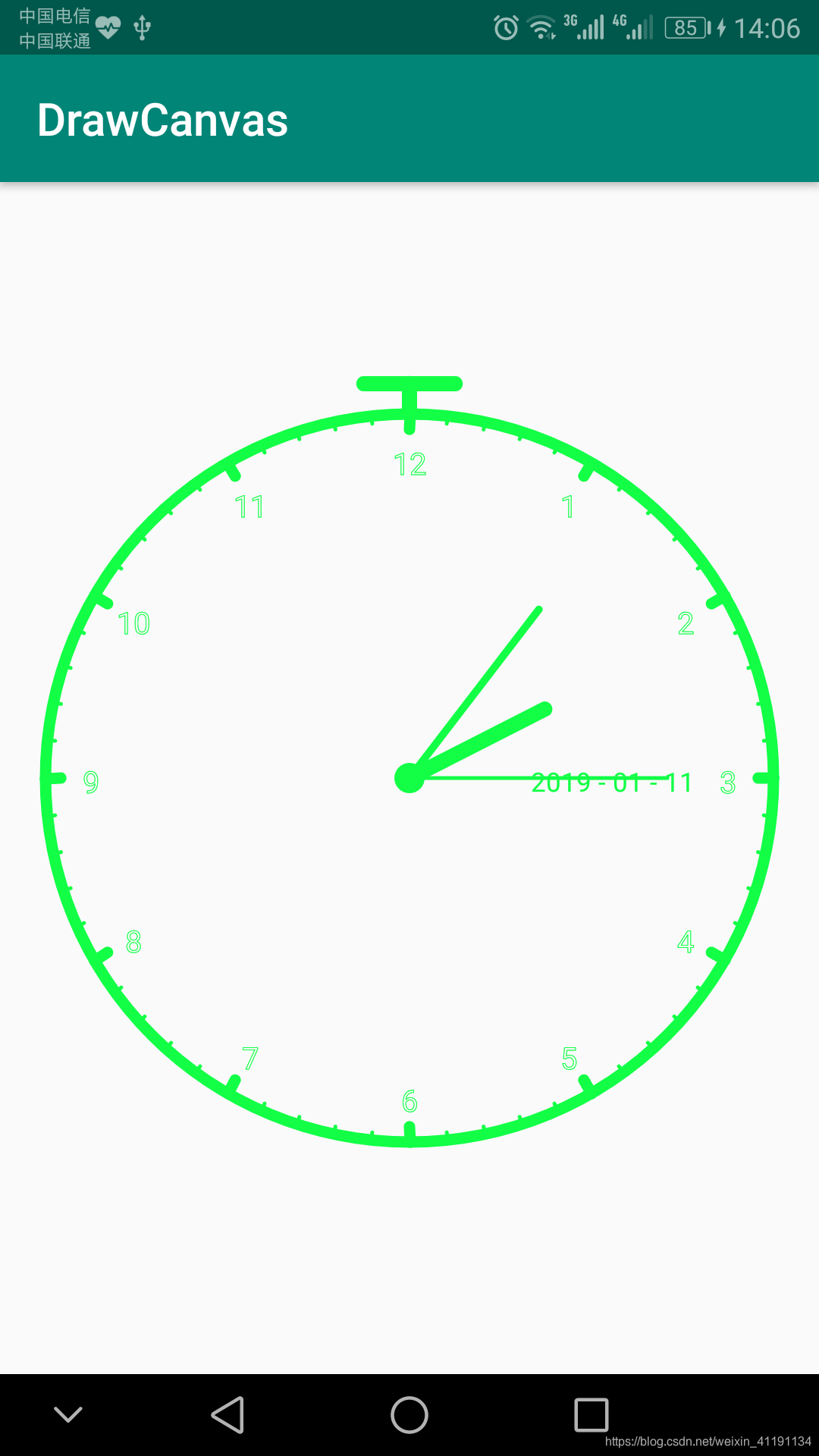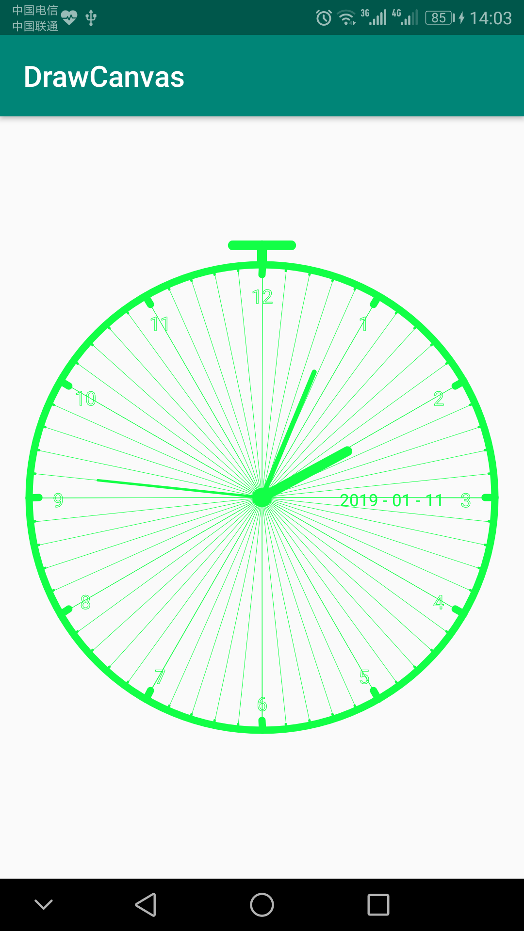 canvas.drawCircle(w/2,h/2,r, paint);//时钟圆盘