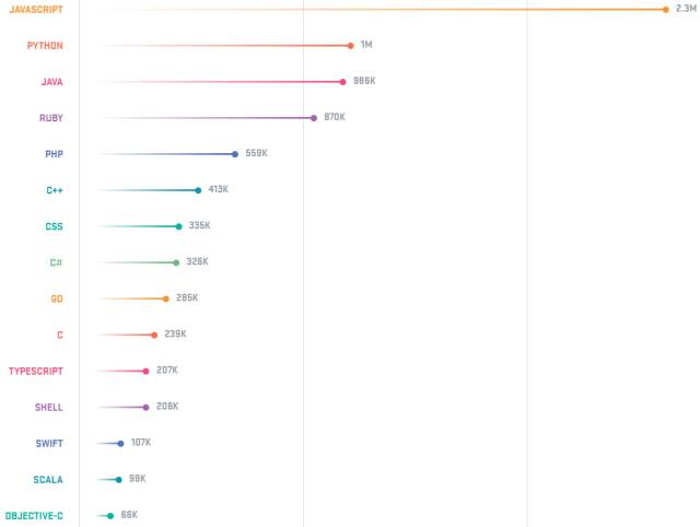 编程语言之间的战争就是一场持久战,各种编程语言排行榜五花八门,程序员们对于这样的内容相比都有些审美疲劳了,那么,在 GitHub 的排行中到底哪门语言可以封王呢?