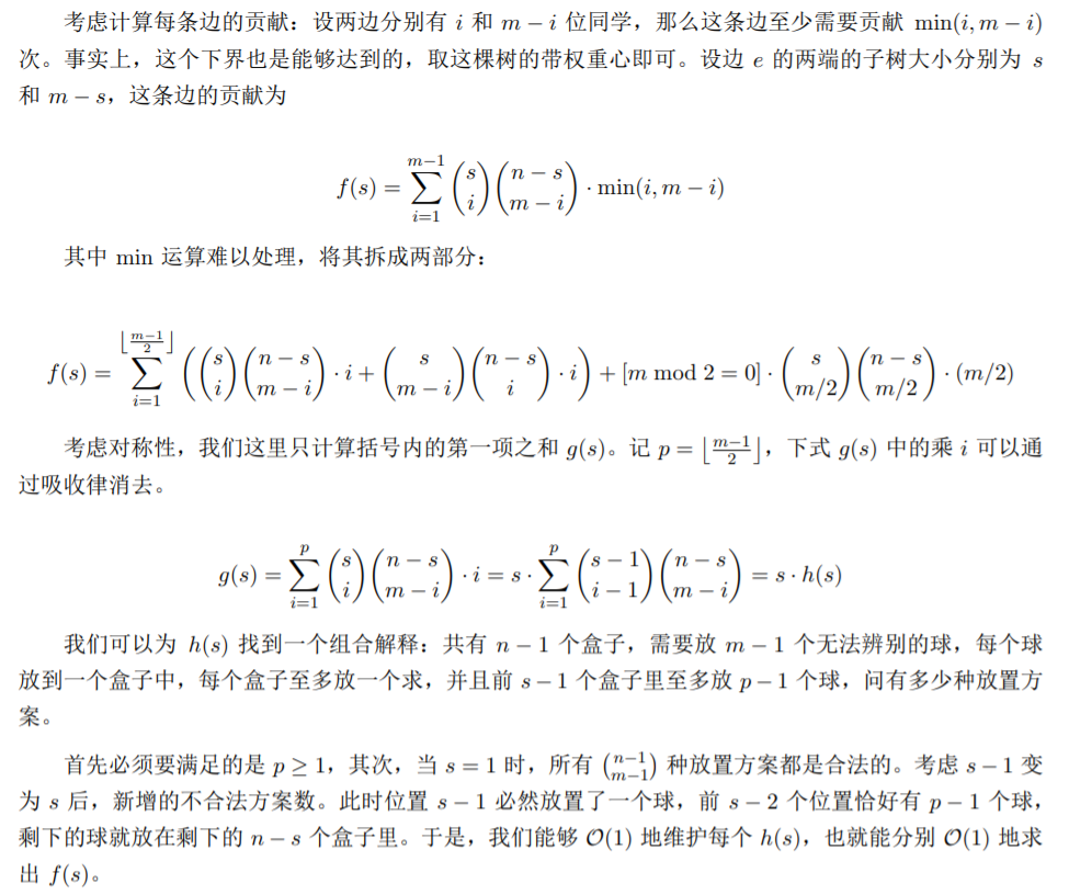 参照题解的做法,计算每条边的贡献,公式不想写了,这题其实是个组合数学题,比赛的时候还以为是树形DP