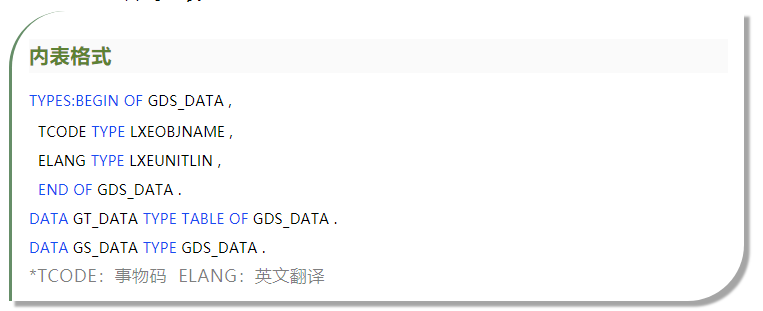| LXE_OBJ_TEXT_PAIR_READ | 读取TCODE的源描述,此处为中文 | |