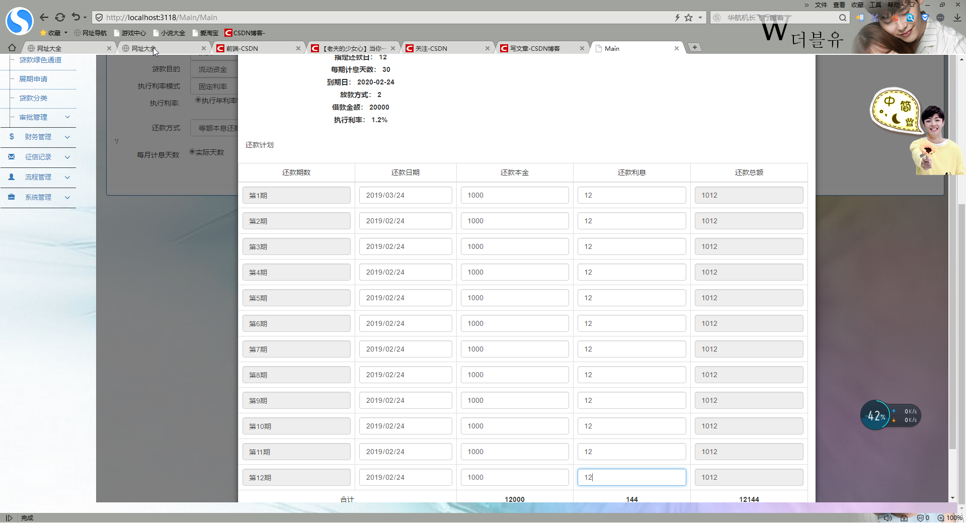 我们前面的文献中已介绍过新建一个客户快速贷款的代码实现的过程。现在展示的是客户授信放款的还款计划。效果图如下