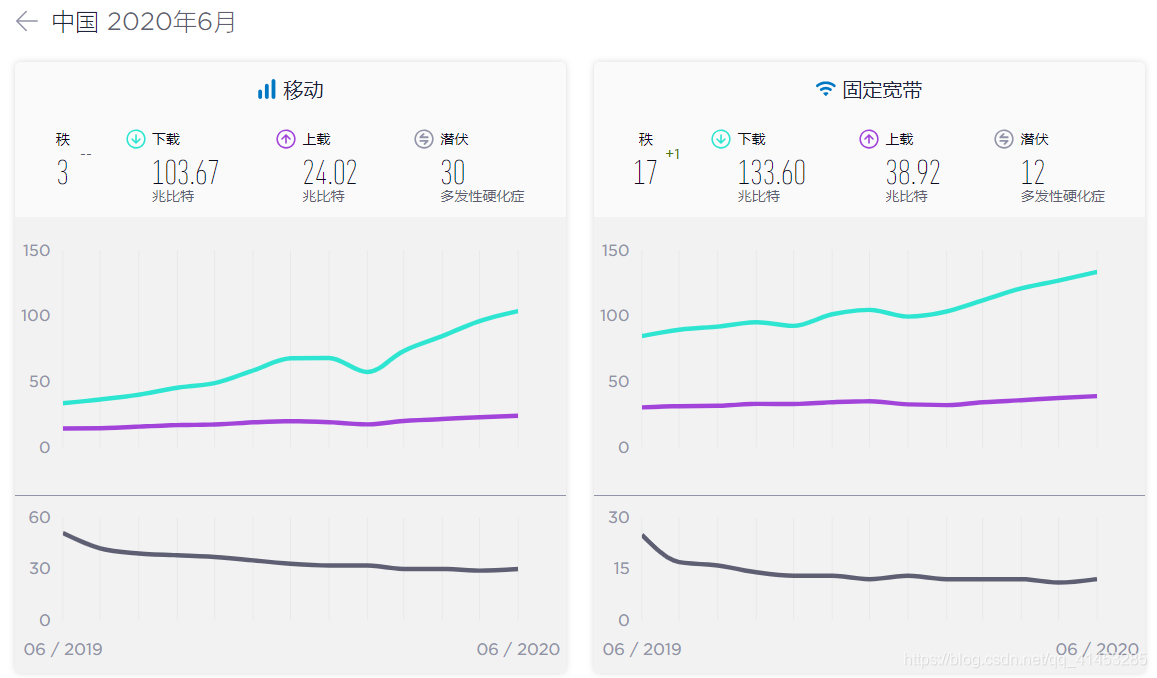 - 下面有一个网站可以来查看当前各国的流量速率比,进入之后找到中国,点击查看:https://www.speedtest.net/global-index