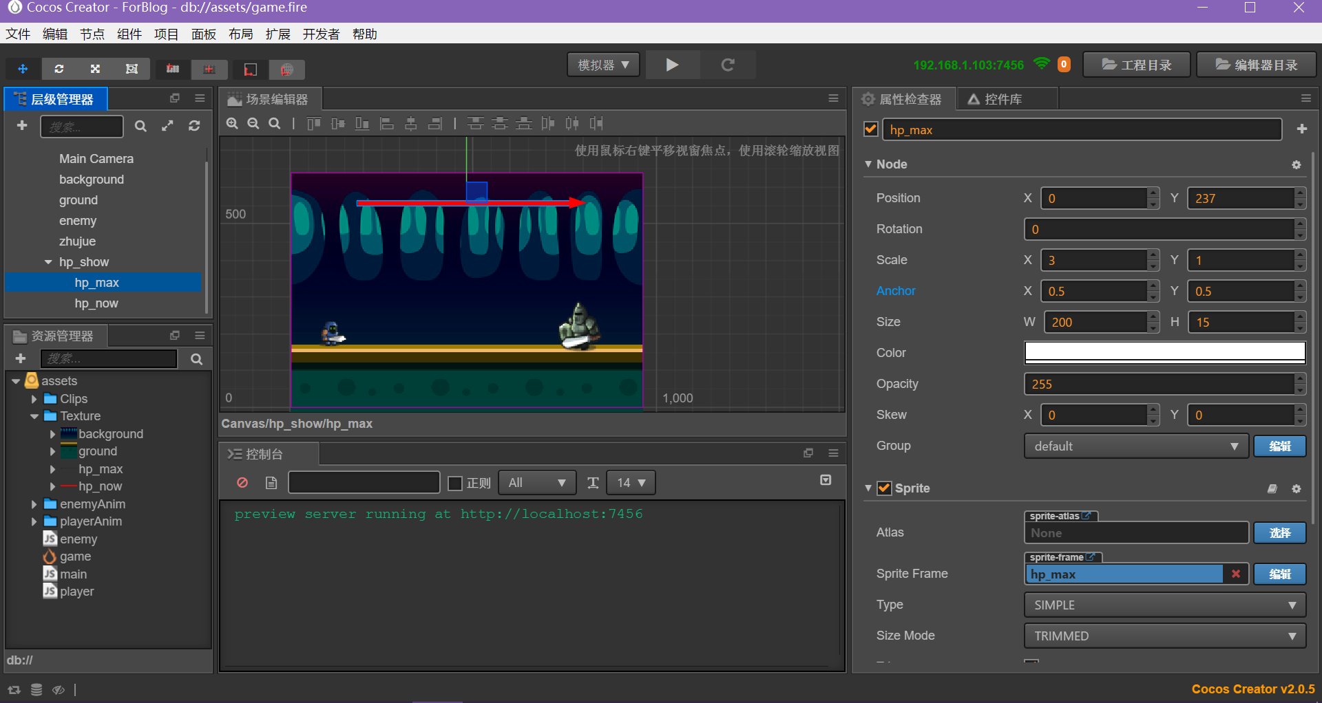 最大HP为1000,用于显示血条的精灵。