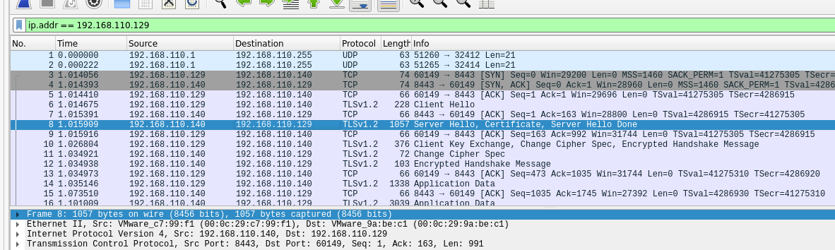发现tls加密后的192.168.110.129和靶机(140)通讯密切: