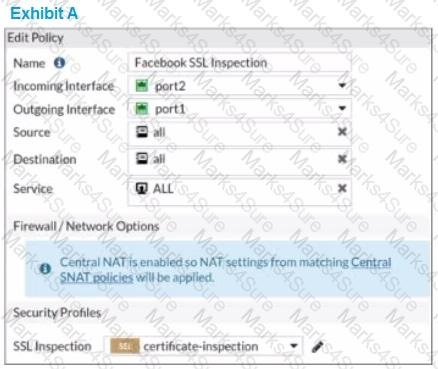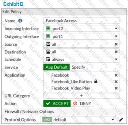 The exhibits show the SSL and authentication policy (Exhibit A) and the security policy (Exhibit B) tor Facebook. 〖提示显示了SSL和身份验证策略(提示A)和Facebook的安全策略(提示)。〗