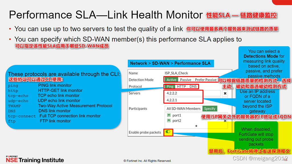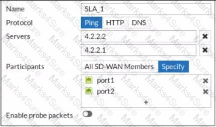 Why is FortiGate not sending probes to 4.2.2.2 and 4.2.2.1 servers? (Choose two.) 〖为什么FortiGate不向4.2.2.2和4.2.2.1服务器发送探测?(选择两个)〗