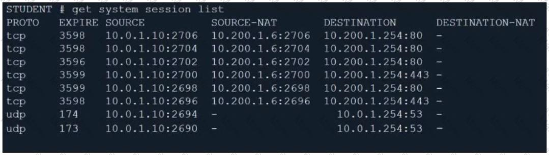 Which contains a session list output. Based on the information shown in the exhibit, which statement is true? 〖包含会话列表输出。根据提示显示的信息,哪个描述是正确的?〗
