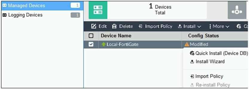 Refer to the exhibit. You are using the Quick Install option to install configuration changes on the managed FortiGate.〖参考图片,你正在使用快速安装选项在被管理的FortiGate上安装配置更改。〗