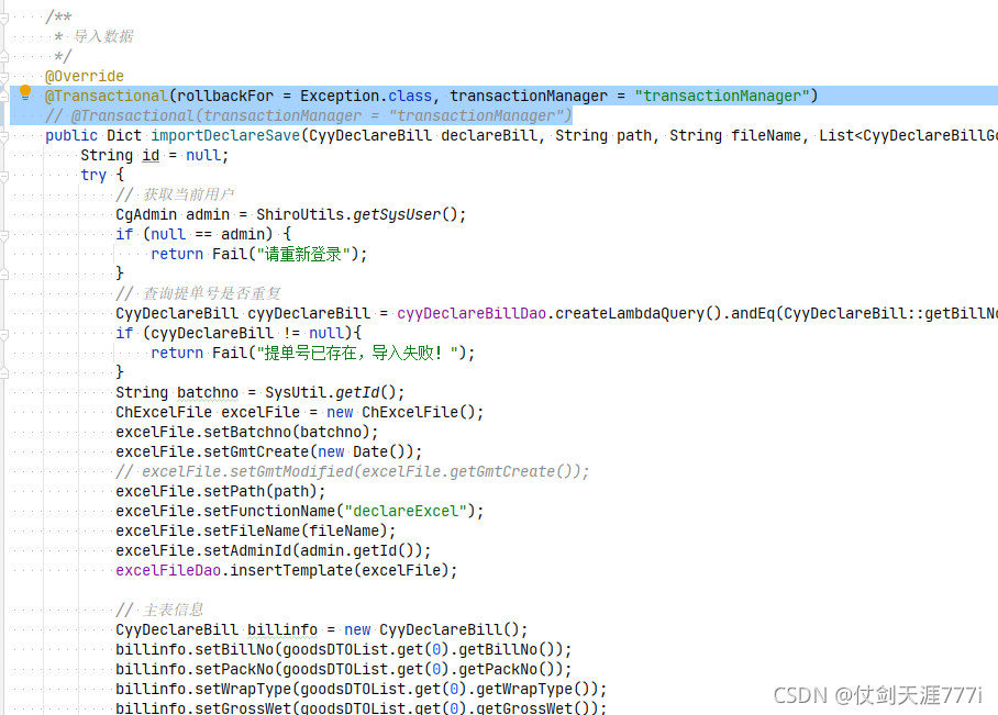 项目中配置多个数据源后,在使用@Transactional()注解时如果不直接指定使用的数据源,Spring就不知道具体使用哪一个事务管理器来进行事务管理了,因此需要通过某种方式来具体指定一下。可以通过使用 @Transactional(transactionManager = “xxTransactionManager”) 来进行指定。