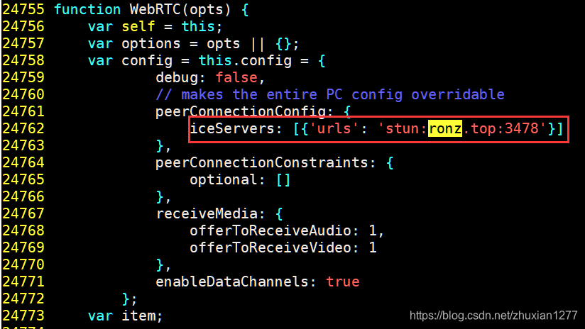 {"isDev": true,"server": {"port": 8888,"/* secure */": "/* whether this connects via https */","secure": true,"key": "/usr/lab_project/4666031_ronz.top.key", "cert": "/usr/lab_project/4666031_ronz.top.pem","password": null},"rooms": {"/* maxClients */": "/* maximum number of clients per room. 0 = no limit */","maxClients": 0},"stunservers": [{"urls": "stun:10.10.12.112:3478"}],"turnservers": [{"urls": ["turn:10.10.12.112:3478"],"username": "neu","credential": "123456","expiry": 86400,"secret": "123123were"}]