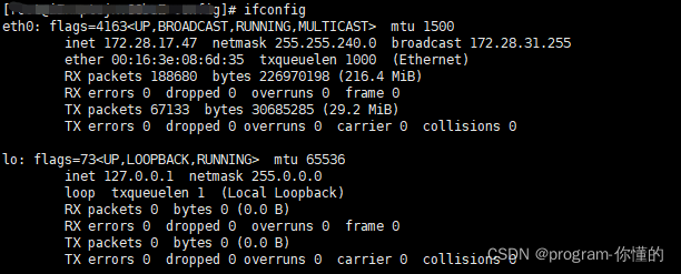 eth0当中的172.28.17.47就是本机的内网IP地址