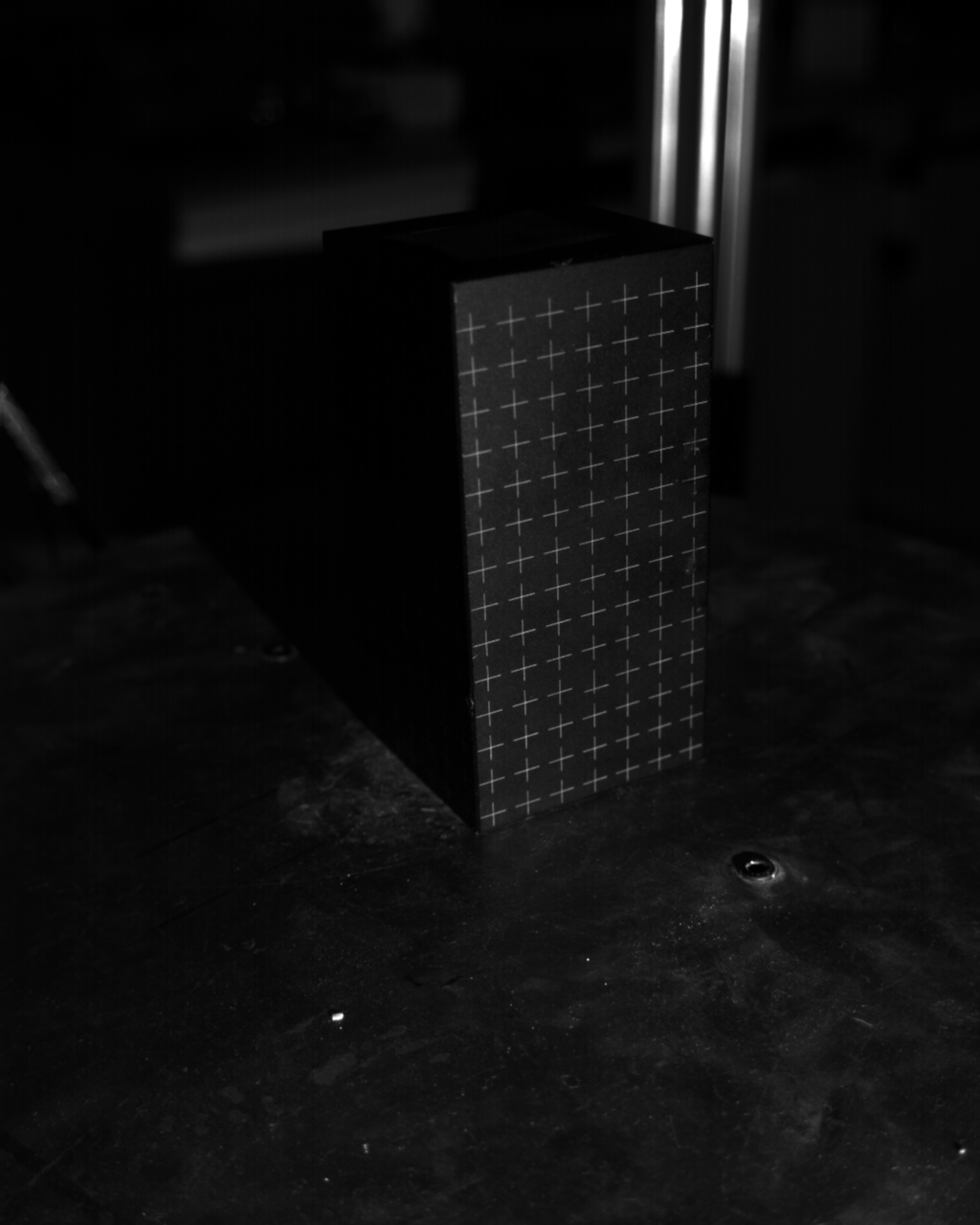 相机标定时常会使用标定板进行标定,常用的标定法有张正友老师的平板标定,常用的标定板有棋盘标定板和圆盘标定板,但是很多地方使用TSAI两步标定法时会使用自制的标定靶标吗,例如我们采用的按规则排序的十字靶标,拍摄得到的实物如下: