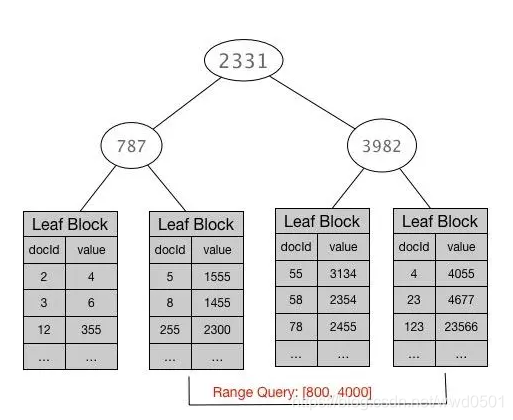 - Lucene6.0引入了重新设计的数值类型的索引结构,不再采用倒排索,而是使用了更适合范围查找的Block K-d Tree。 ES从5.0开始引入这种新结构。(参考: searching-numb3rs-in-5.0)