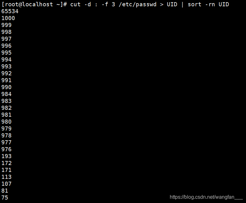 2.将3,4 字段分别截取出来写入文件UID和文件GIU但是要使这两个文件中的信息是以数值由大到小的形式显示;
