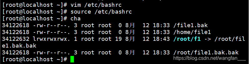 8.写出一个永久生效的命令别名为cha,该命令别名可以显示出以上四个文件的详细属性和inode号